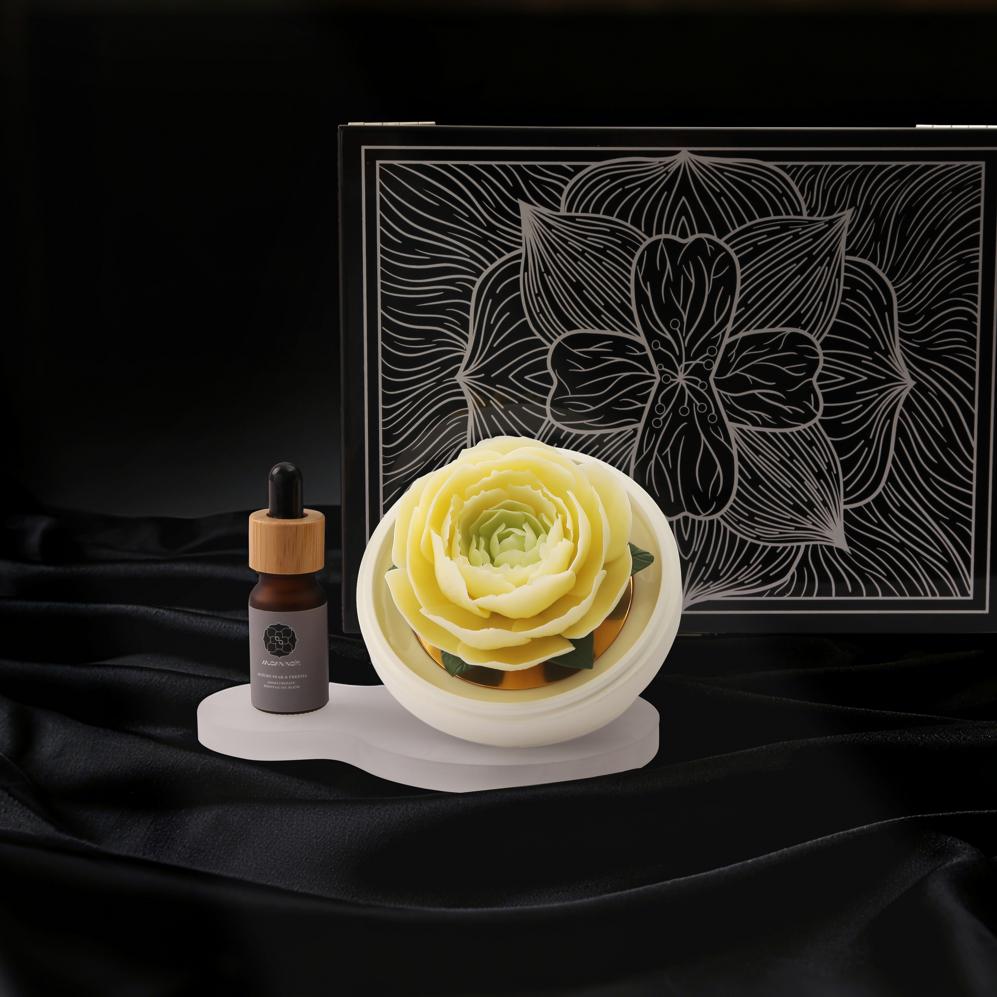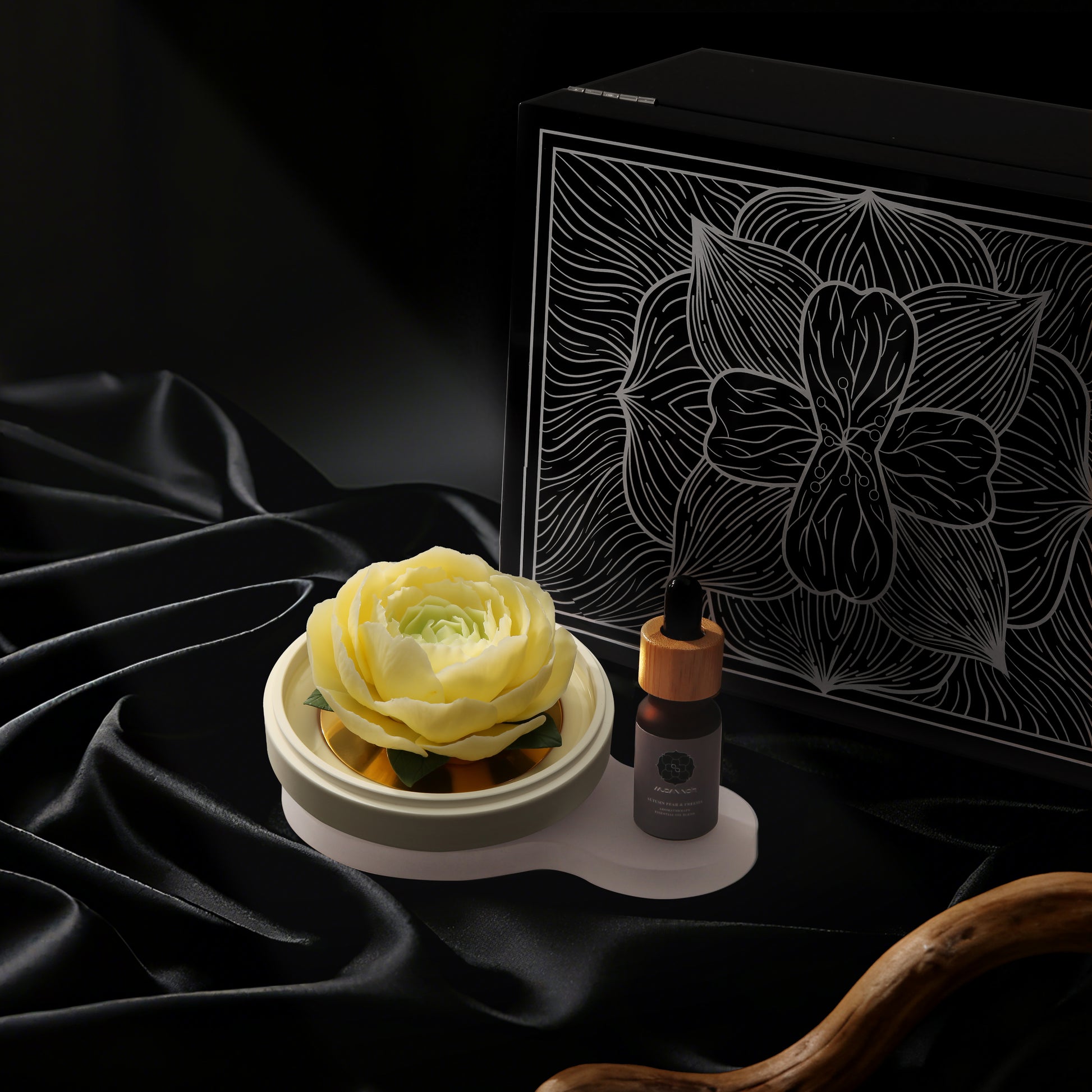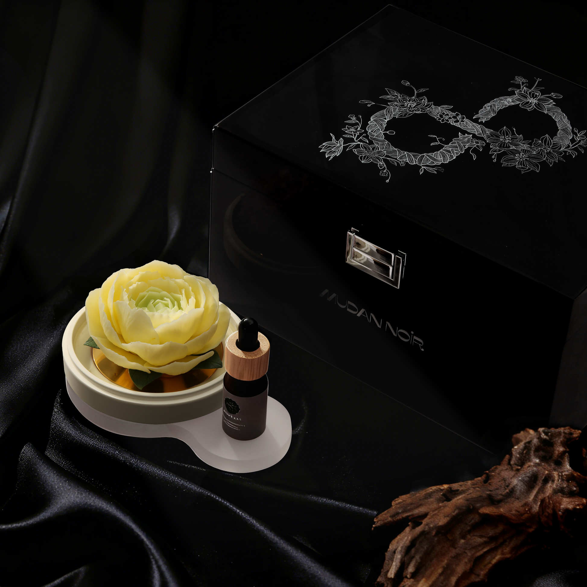 Black is the origin of our philosophy. It is not the absence of color, but the womb where all possibilities are nurtured—deep, inclusive, infinite. The porcelain peony that glows from within in the dark is our most steadfast manifesto: true luxury dares to bloom in the shadows.