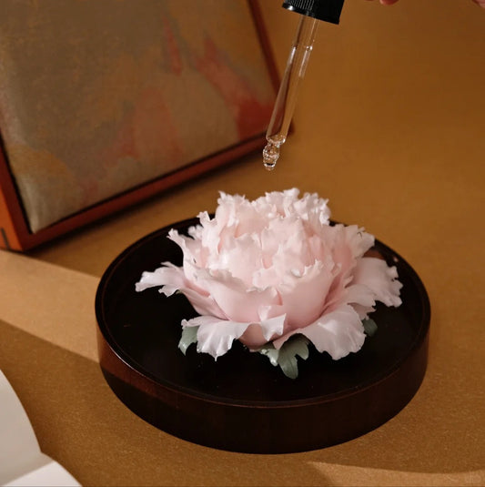 We redefine the destiny of flowers through porcelain. The artisan’s hand acts as a medium, weaving time and focus into the veins of every petal. Transformed by the kiln’s fire, the clay is reborn as celestial bodies that radiate their own light in the darkness. The profound depth of the black peony and the soft luminescence of the white hydrangea are all distinct annotations on light.