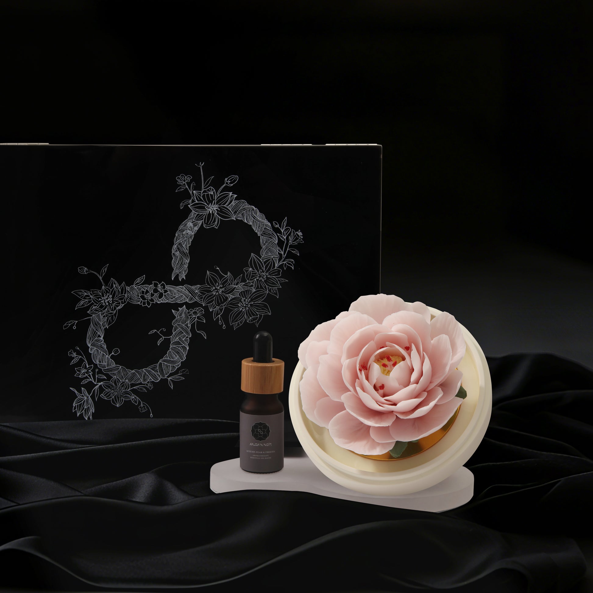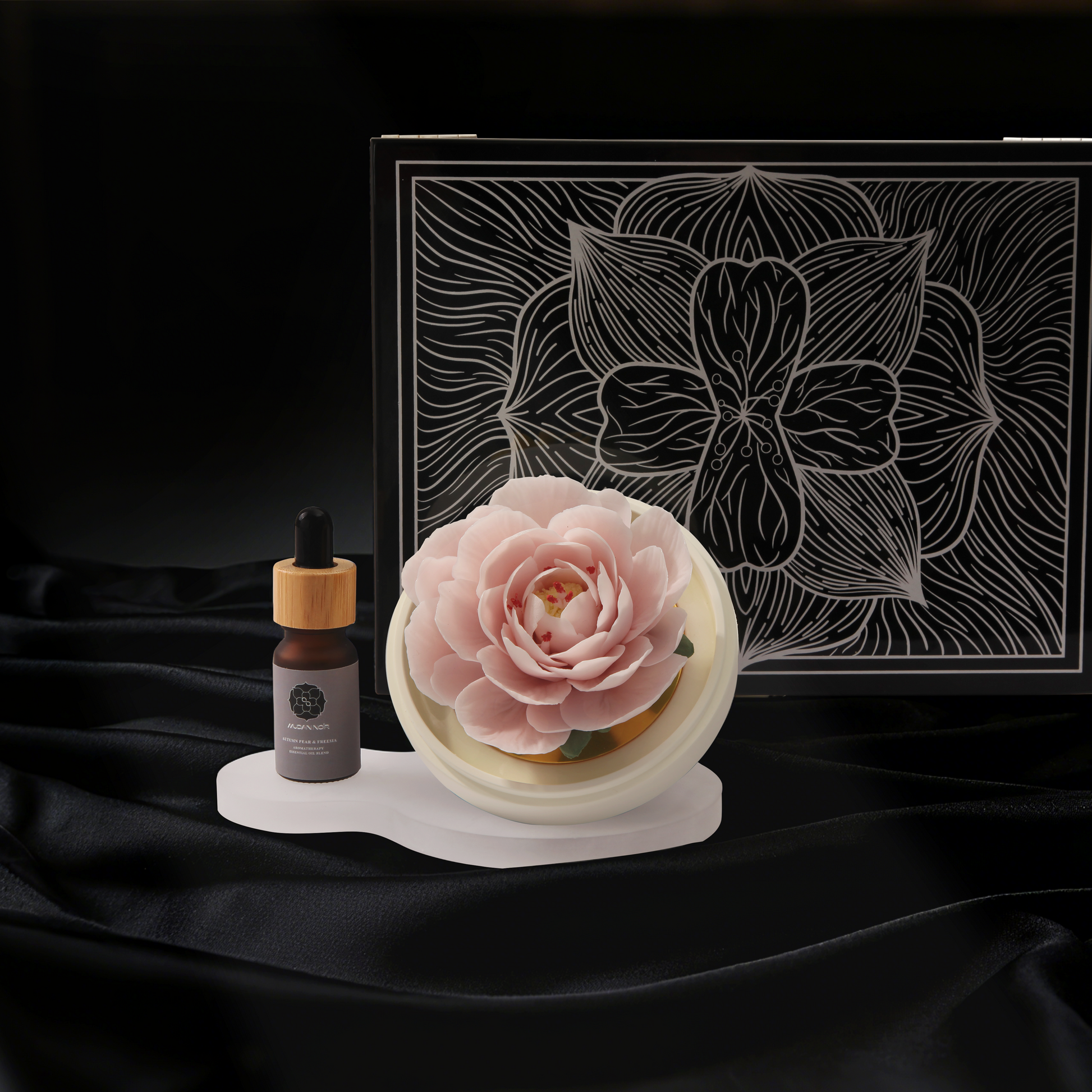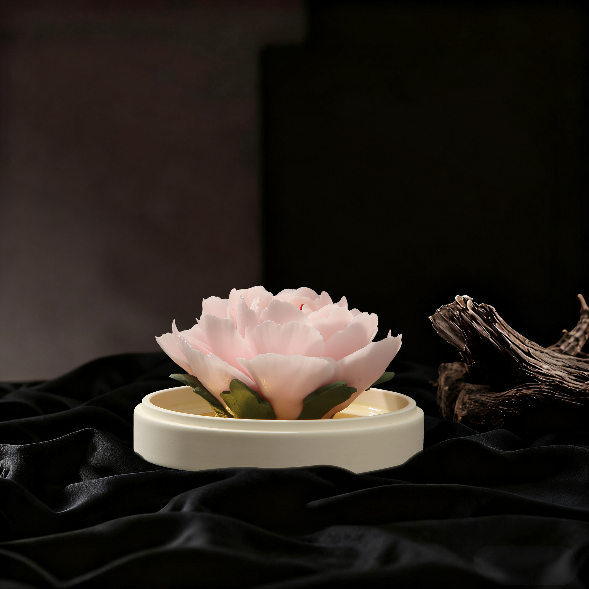 The pink peony is a shy verse in time. "Blushing Peony" shapes a delicate bloom from ceramics. Peonies symbolize wealth and perfection, and this soft pink overflows with romantic tenderness. Drop in essential oil, and the fragrance is like sweet whispers, gently touching the heart's softness and healing tiredness and worries.
