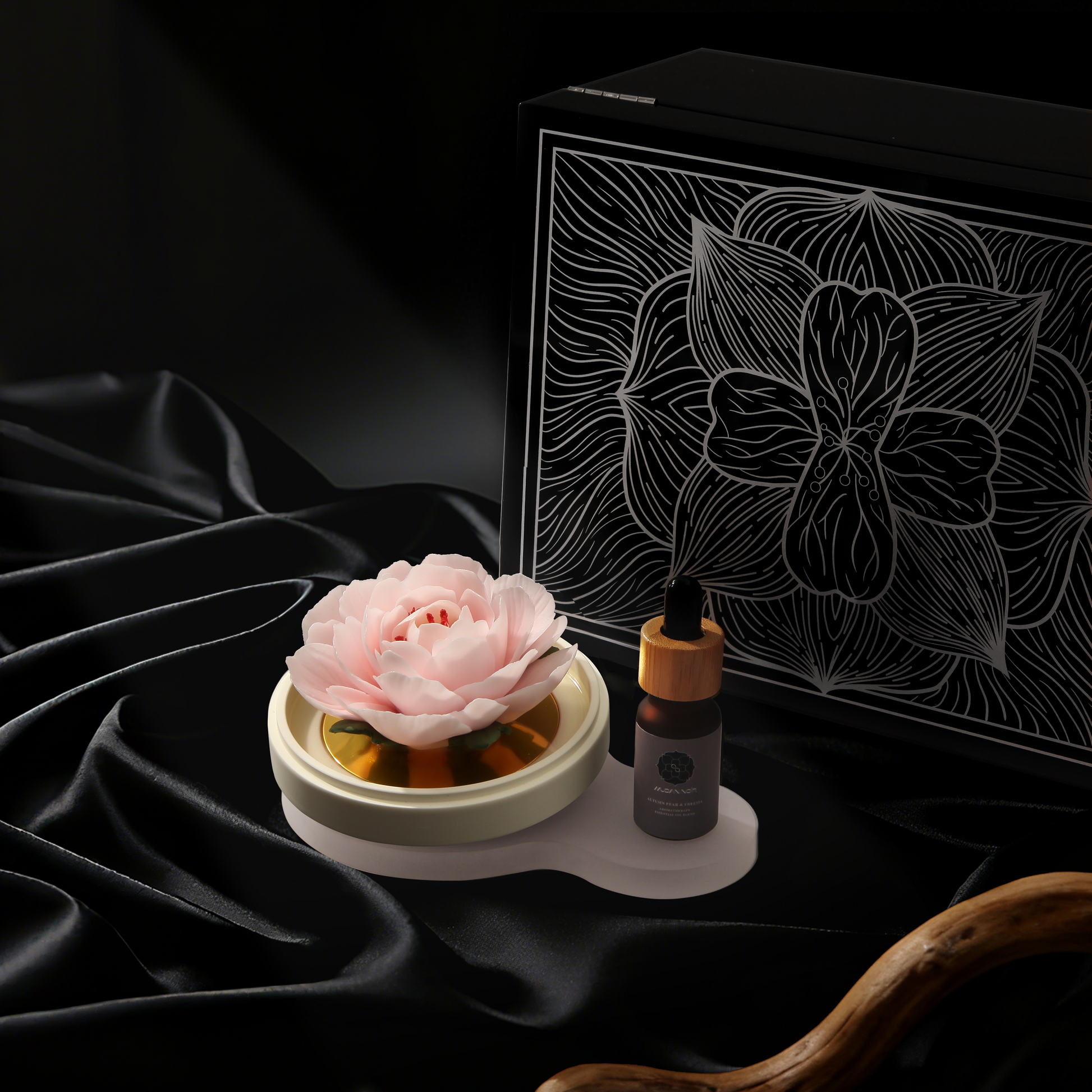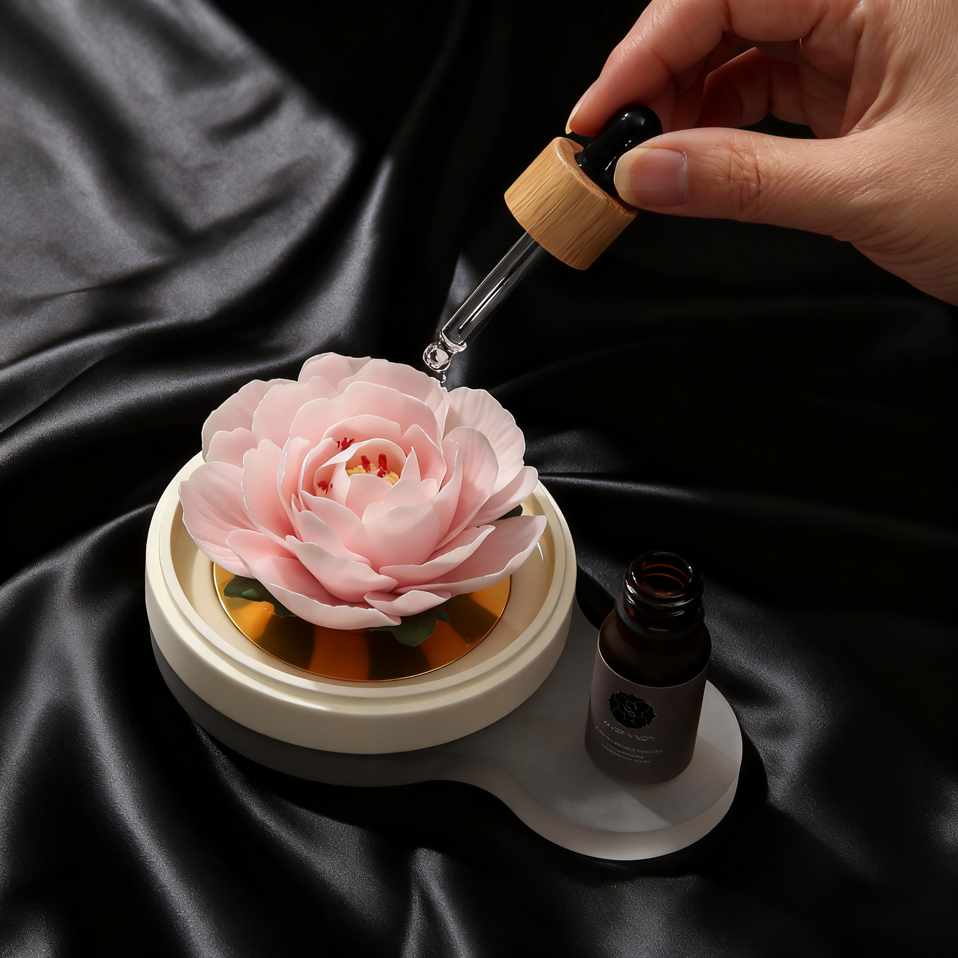 Essential oil seeps into porcelain petals, and fragrance spreads like gauze. In hustle and bustle, it's a peaceful haven, brushing away restlessness; at night, it becomes gentle company. Amid the lingering aroma, it leads you to inner peace, as if in a spring garden, embraced by beauty.