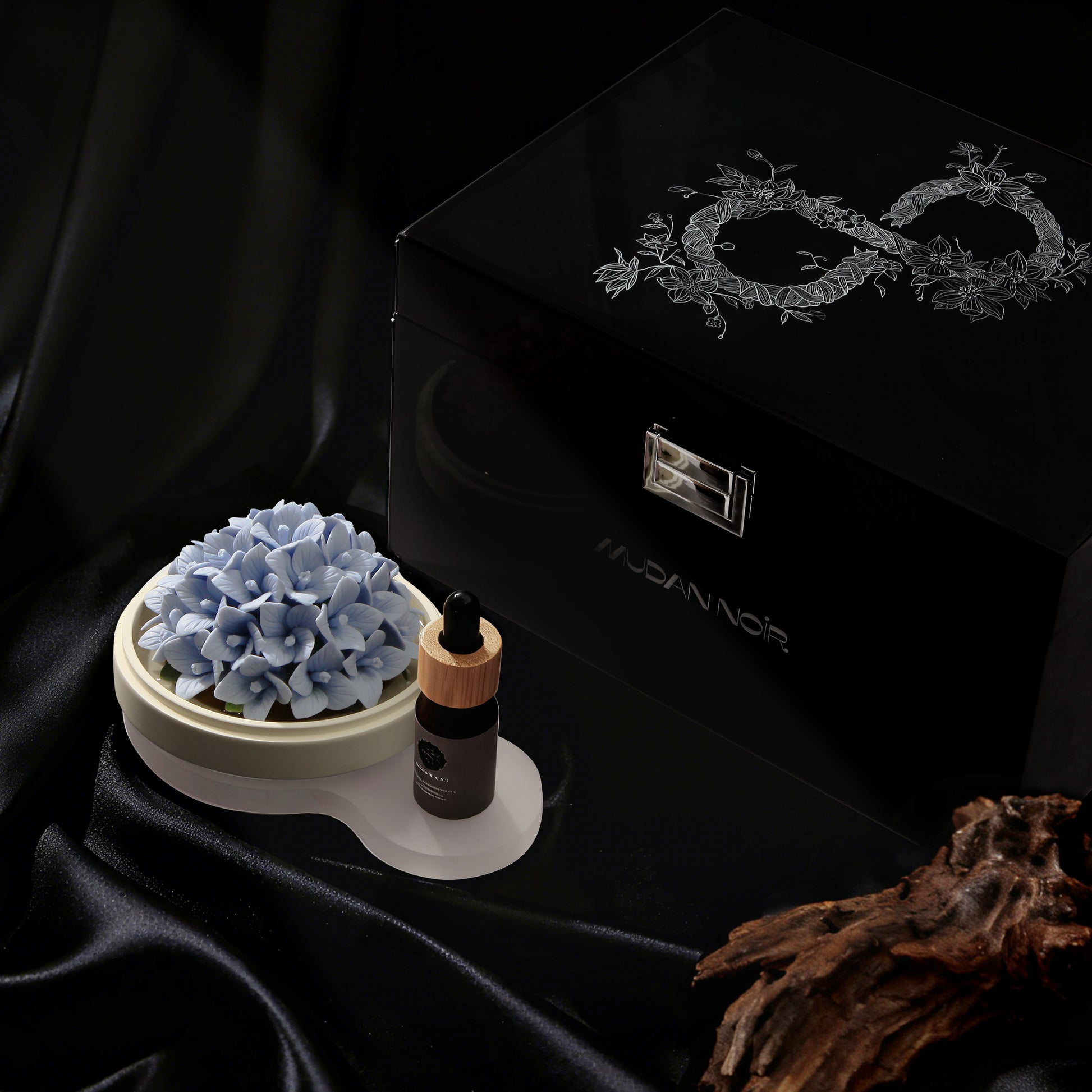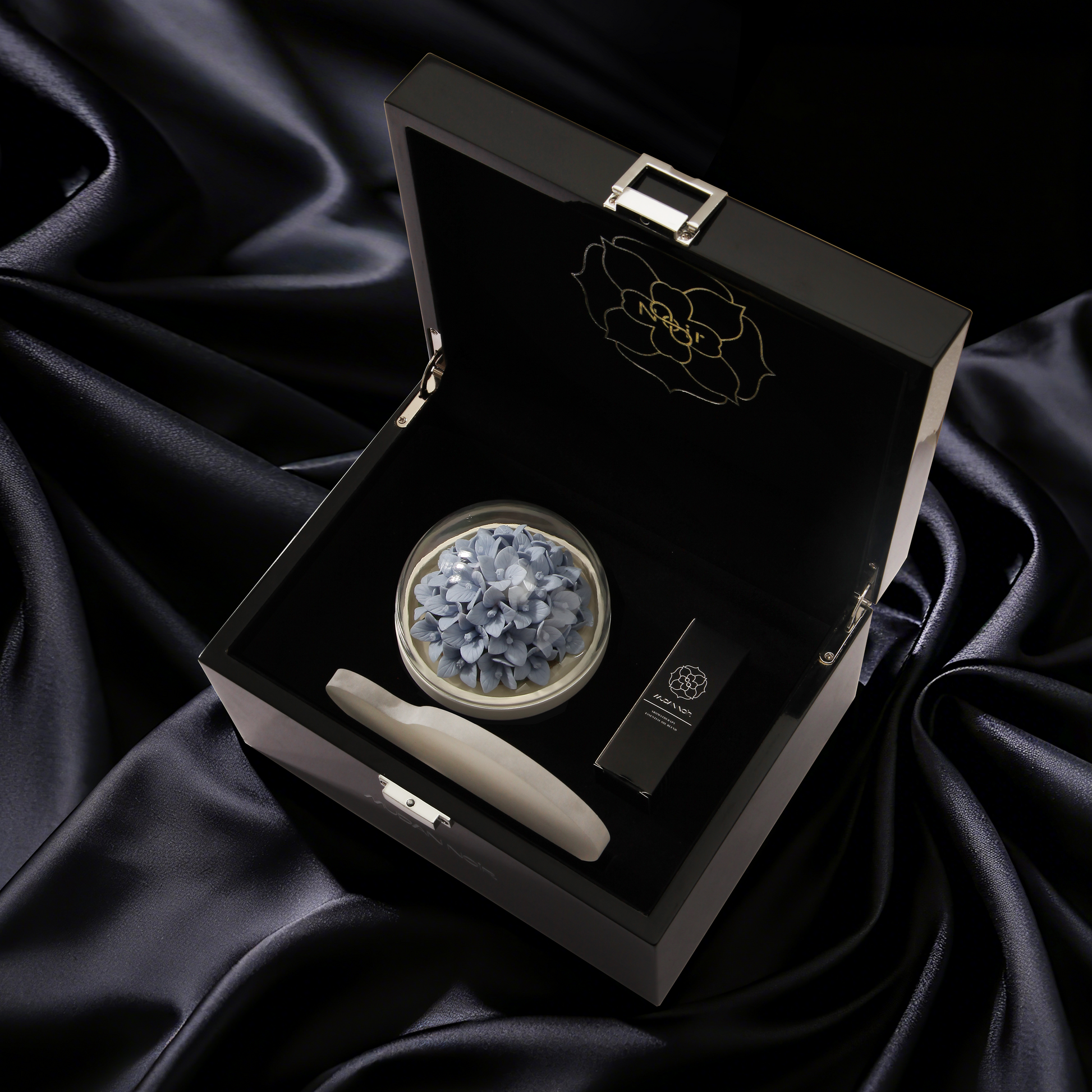 Black is the origin of our philosophy. It is not the absence of color, but the womb where all possibilities are nurtured—deep, inclusive, infinite. The porcelain peony that glows from within in the dark is our most steadfast manifesto: true luxury dares to bloom in the shadows.