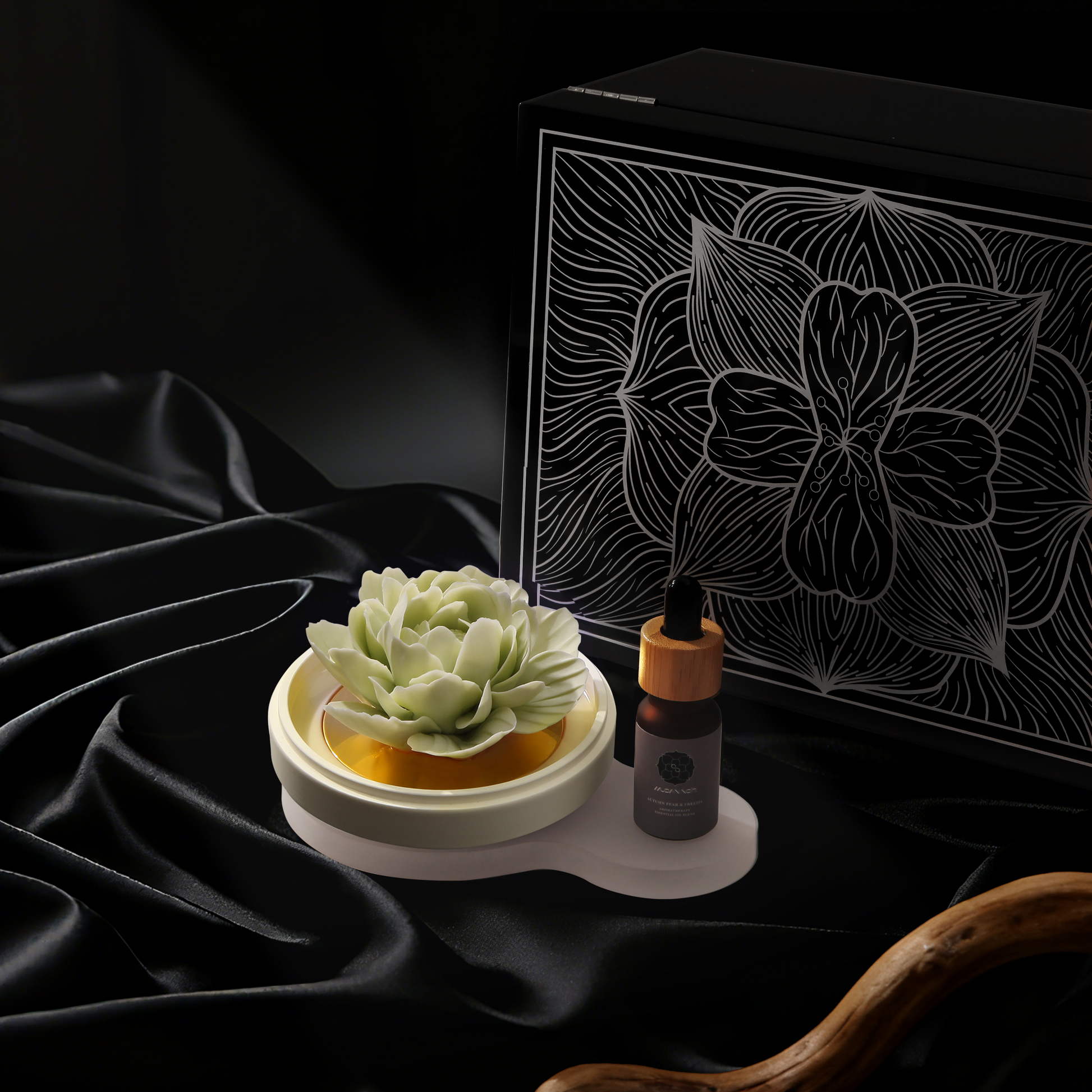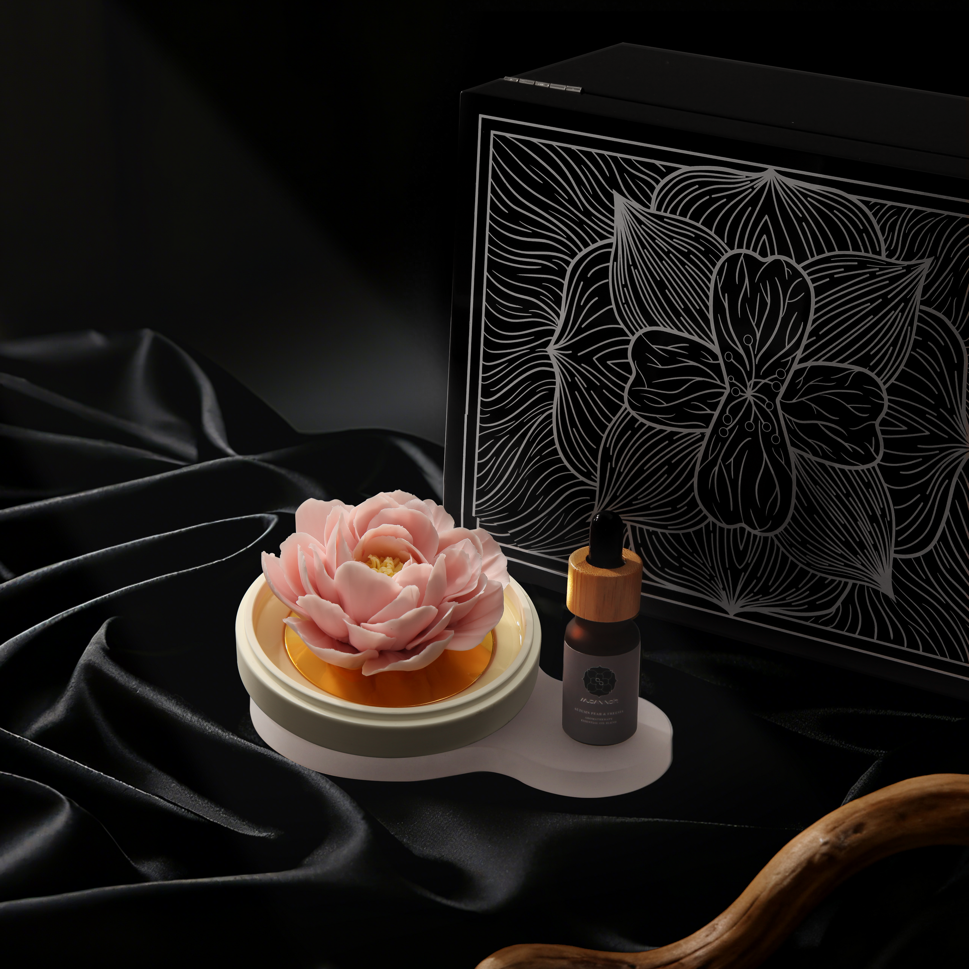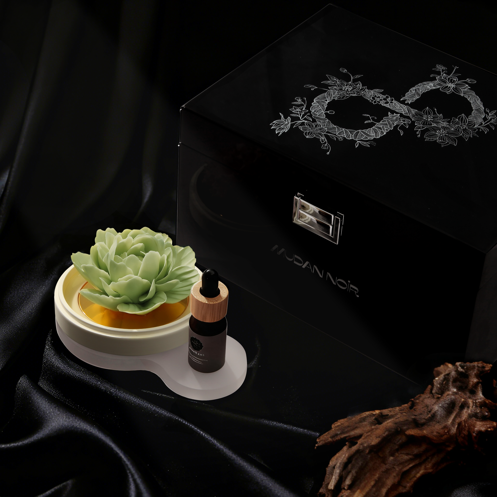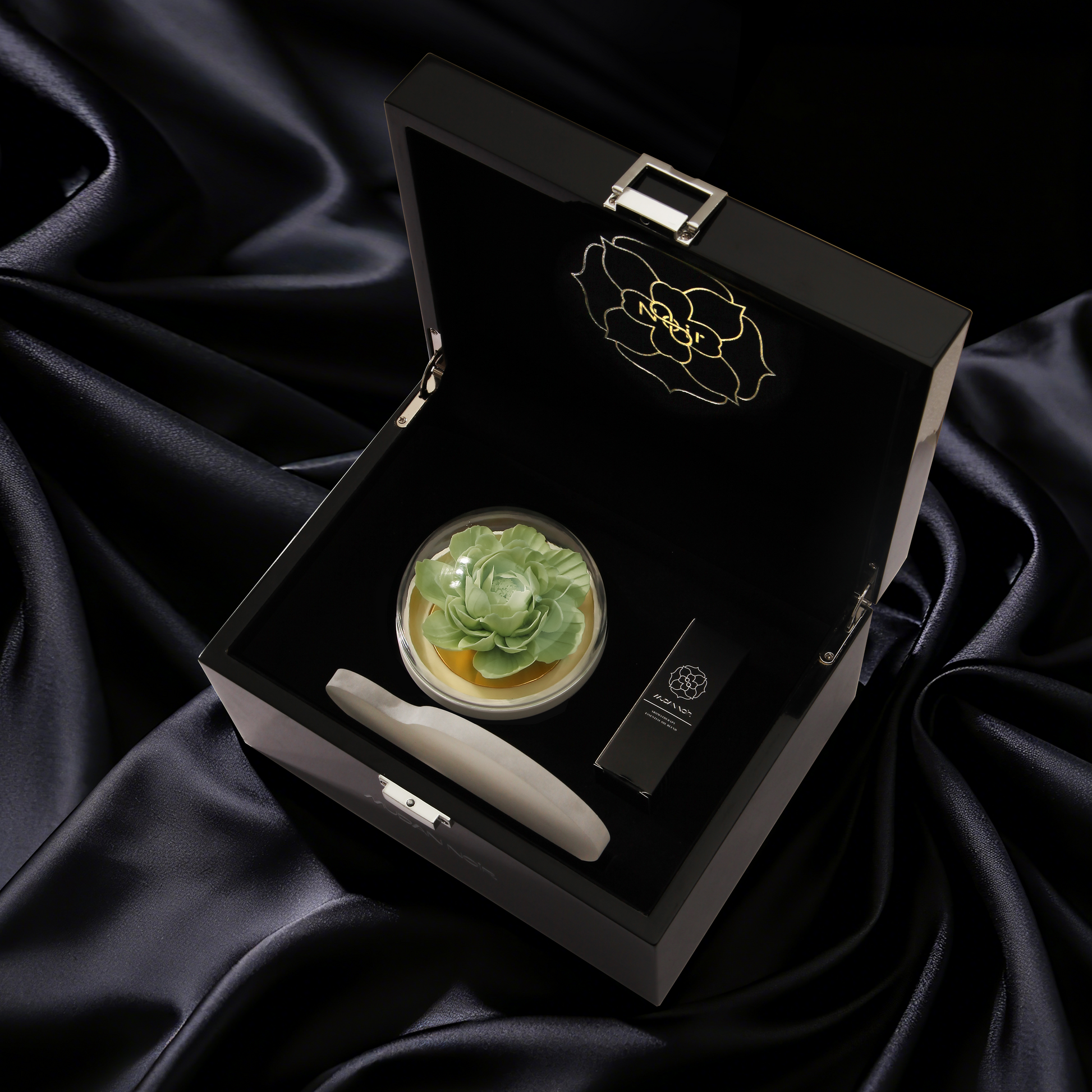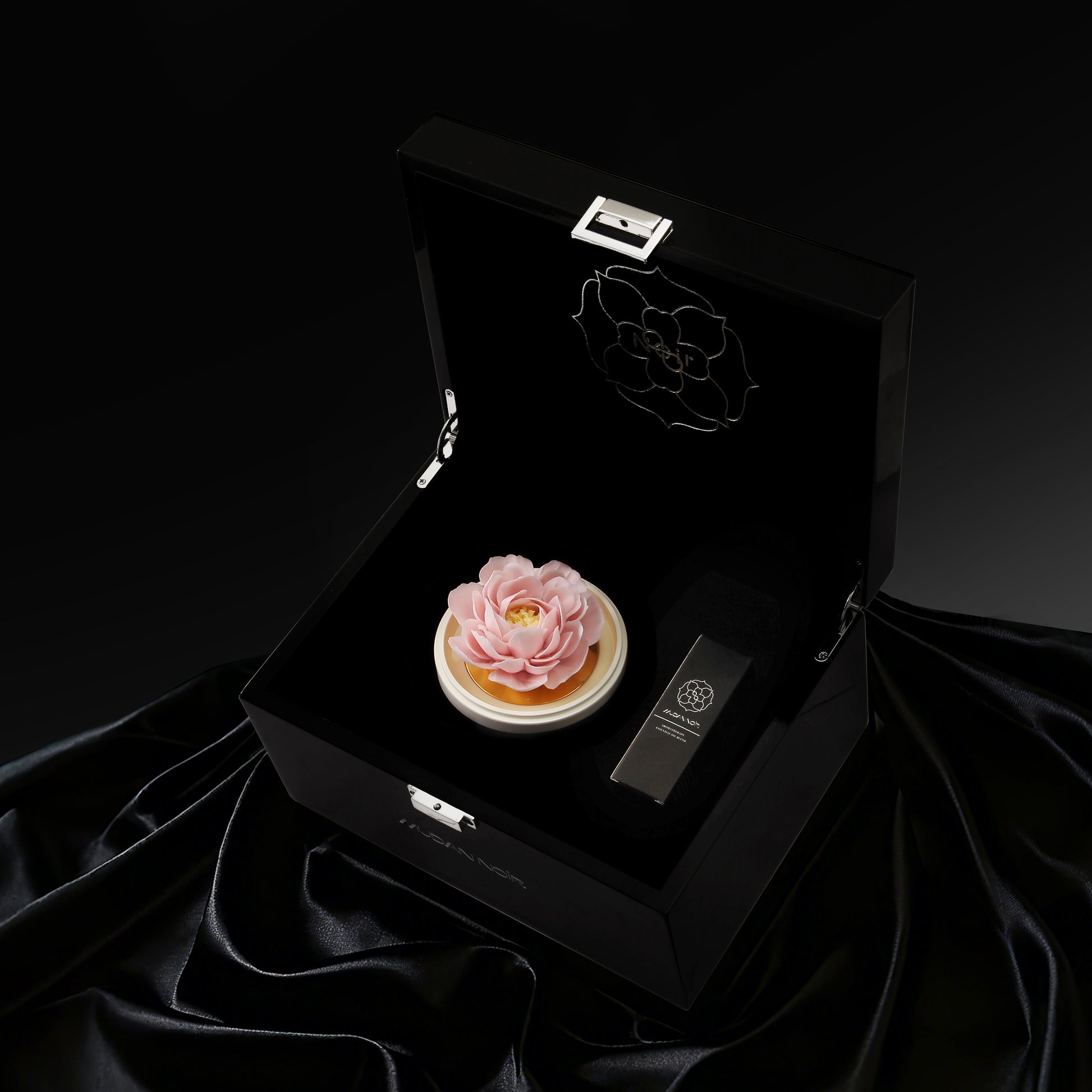Black is the origin of our philosophy. It is not the absence of color, but the womb where all possibilities are nurtured—deep, inclusive, infinite. The porcelain peony that glows from within in the dark is our most steadfast manifesto: true luxury dares to bloom in the shadows.